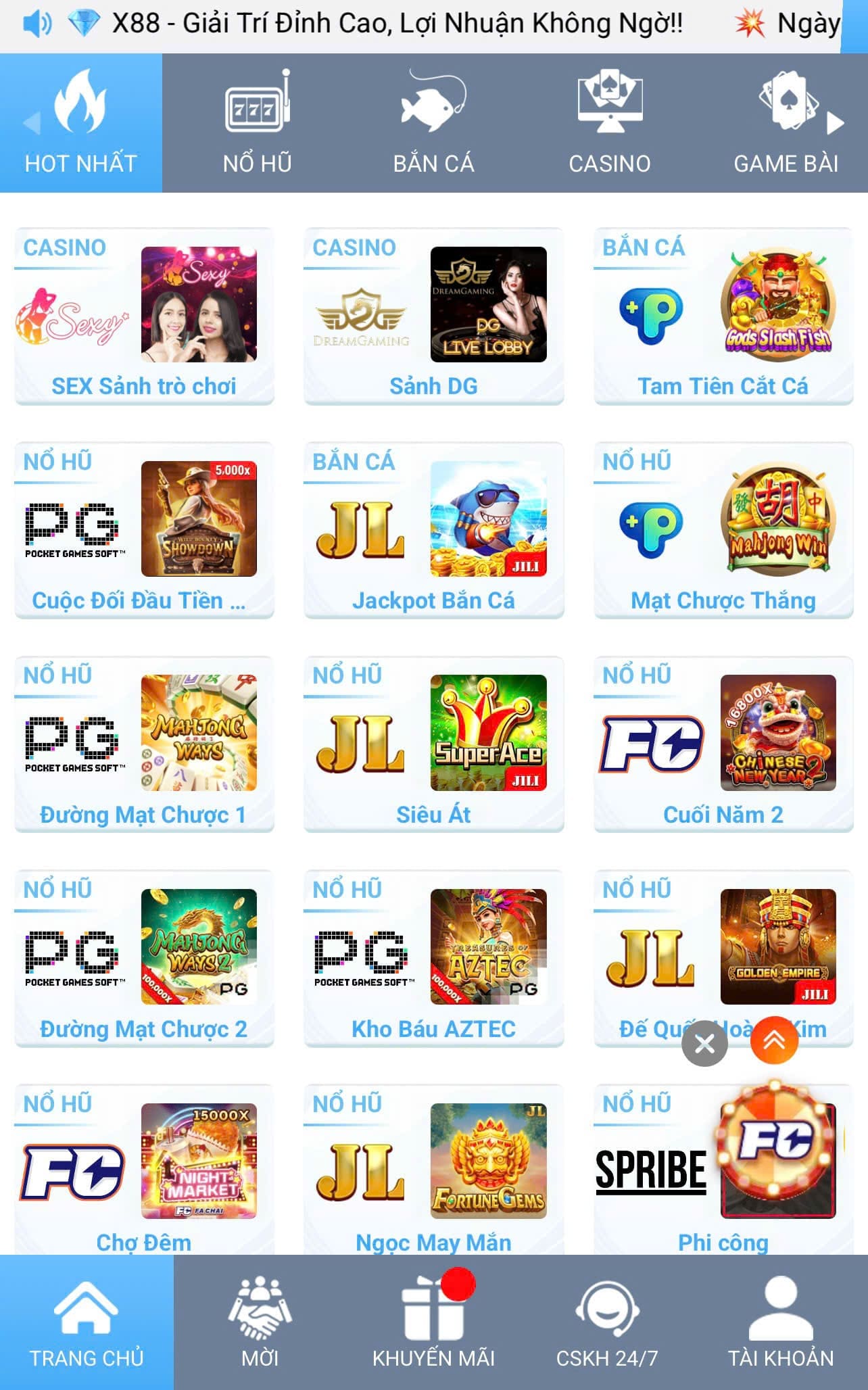Các bàn cược Nổ hũ – Bắn cá đẳng cấp tại x88015.com luôn thu hút rất nhiều cược thủ tham gia. Người chơi đặt cược tại đây được nhà cái hoàn trả 5% tiền cược thua mỗi ngày.